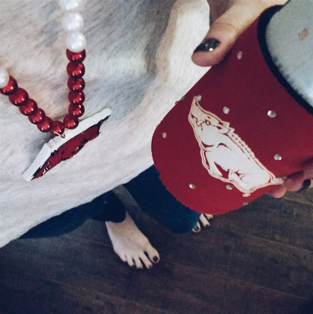 Then, later that evening our friends stopped by for the A&M/Arkansas game. The hubs threw together some buffalo-chicken blue-cheese-stuffed meatballs and my girlfriend made some hot pizza dip. We, appropriately, stuffed our faces during the game, then afterwards played a few games of darts and corn hole. Not to toot my own horn, but my dart game was on point. :)